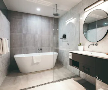 Room features: Luxury bathroom with spacious walk-in shower and free standing bath, complete with eco-friendly bath amenities, bathrobes and slippers. The rooms are air conditioned and include flat screen TVs, complimentary tea and coffee making facilities, a fully stocked mini-bar and ironing facilities.